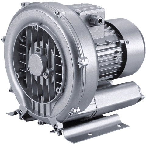 When the impeller of the high-pressure blower rotates, due to the centrifugal force, the wind vane makes the gas move forward and outward, thus forming a series of spiral movements. The air between the blades of the impeller is spirally accelerated and the gas outside the pump body is squeezed into the side groove (inhaled by the suction port T). When it enters the side channel ②, the gas is compressed, and then it returns to the blades of the impeller 1 to accelerate the rotation again. When the air passes through the impeller and side slot along a clamped spiral track, each impeller increases the degree of compression and acceleration. With the progress of rotation, the function of the gas increases, which further increases the gas pressure along the side channel. When the air reaches the connection point between the side seeding and the discharge flange (the side channel narrows at the outlet & gt;), the air is extruded out of the blade and discharged from the pump body through the outlet muffler 4.