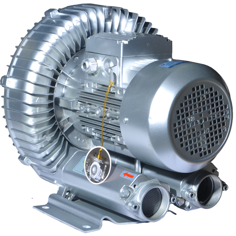 When the impeller of the high-pressure blower rotates, due to the centrifugal force, the wind vane makes the gas move forward and outward, thus forming a series of spiral movements. The air between the blades of the impeller is spirally accelerated and the gas outside the pump body is squeezed into the side groove (inhaled by the suction port T). When it enters the side channel ②, the gas is compressed, and then it returns to the blades of the impeller 1 to accelerate the rotation again. When the air passes through the impeller and side slot along a clamped spiral track, each impeller increases the degree of compression and acceleration. With the progress of rotation, the function of the gas increases, which further increases the gas pressure along the side channel. When the air reaches the connection point between the side seeding and the discharge flange (the side channel narrows at the outlet & gt;), the air is extruded out of the blade and discharged from the pump body through the outlet muffler 4.